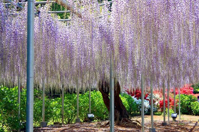 A japánok imádják a virágokat és a virág parkokat. Az egyik kedvencük a lilaakác. Szerintük ez az egyik legrégebbi növény, amelyről a Manyoshu-ban, a japán költészet egyik legrégebbi gyűjteményében több helyen is említést tesznek. A legjobb hely, hogy csodás akácokat lássunk az “Ashikaga virág park”, Ashikaga városában, mely Tokyo-tól 80 km-re északra található. A park meghatározó fái a kék, fehér, rózsaszín akác és az aranyeső, japánul kingusari. A csodás park több mint 1000 m2 területű. A virág parkot bejárva találkozhatunk esernyő formájú 100 éves fákkal, egy 80 méteres alagúttal mely a fák alatt vezet. A park május első két hetében borul teljesen virágba.